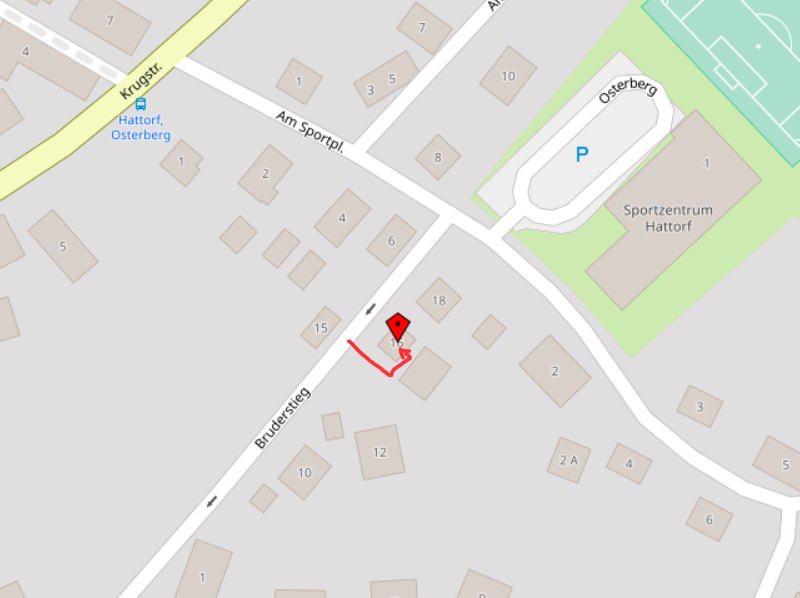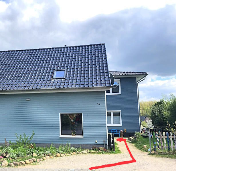 Mein Praxisraum befindet sich in dem vorderen, kleinen Haus. Der Eingang ist hinten, auf der rechten Seite.